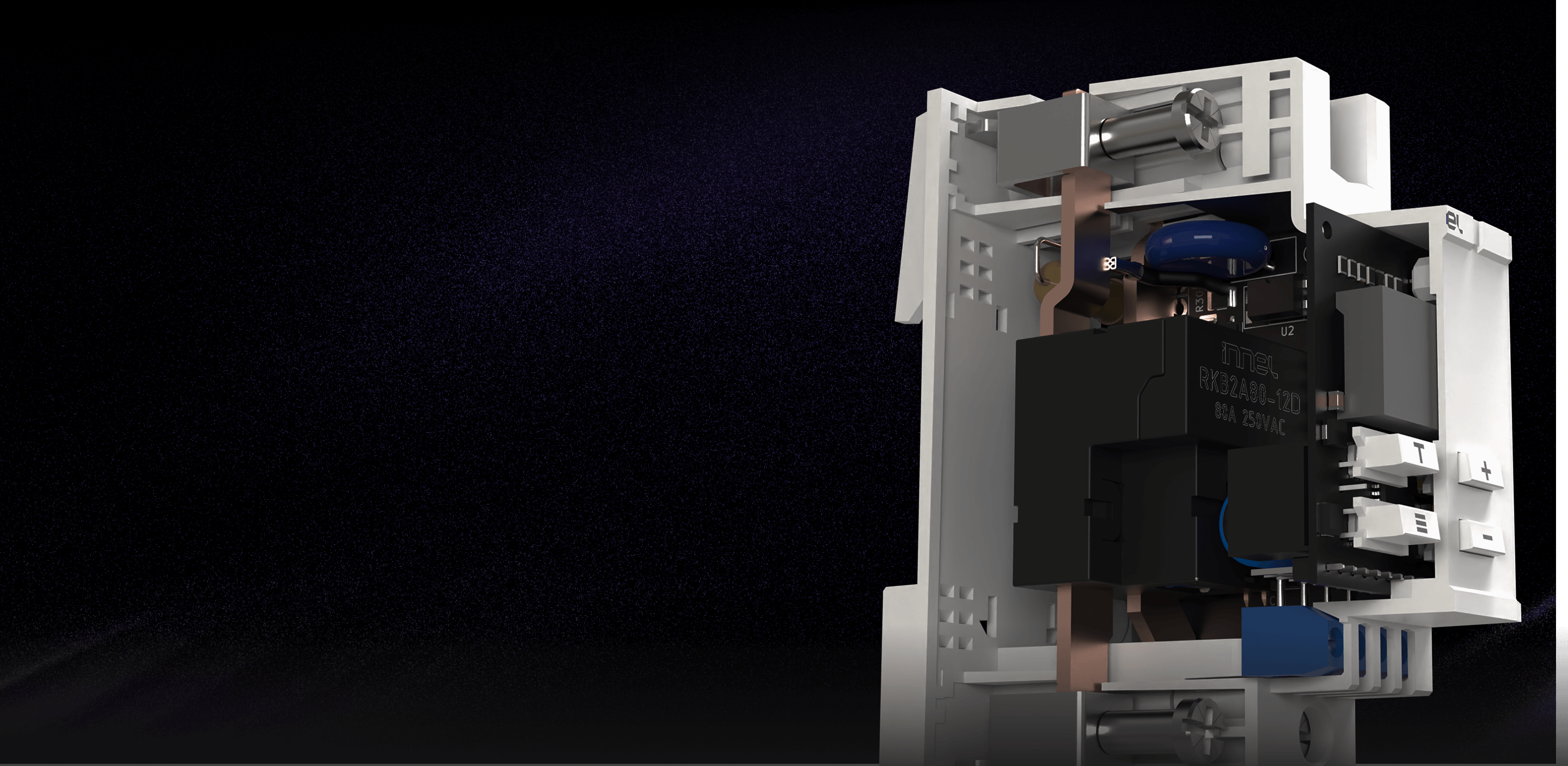 Первое реле с механически объединенным разрывом L и N в двухмодульном корпусе